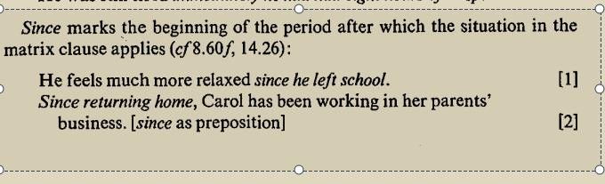 今天看了这个网站关于since从句的解读。请问曹荣禄老师所说夸克关于since的解读是在a comprehensive grammar of the English language一书的clause of timetime relationships里吗?