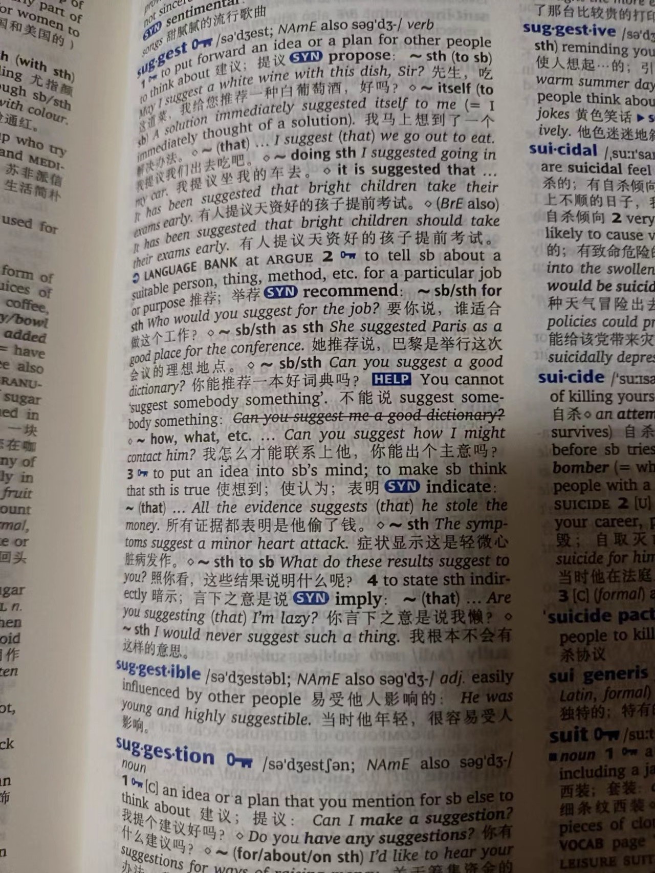 你的理解是错误的。词典释义3 和释义4的区别是suggest的主语是something还是somebody. 主语为something时,suggest通常翻译为表明;主语为somebody时,suggest通常翻译为暗示。这二种用法的that从句都用陈述语气。你的这个句子中suggest的主语是story,即something,suggest的意思是表明。新概念这篇文章告诉读者Jennifer虽然30多岁了,但常在舞台上演年轻女孩。这说明/表明她并不是老得不能演年轻女孩。这是阅读理解题,需要根据课文内容来选择。正确答案应该是A:The story suggests that she is not too old to appear on stage as a young girl.