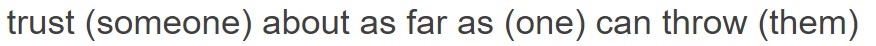 https://idioms.thefreedictionary.com/trust+(someone)+about+as+far+as+(one)+can+throw+(them)