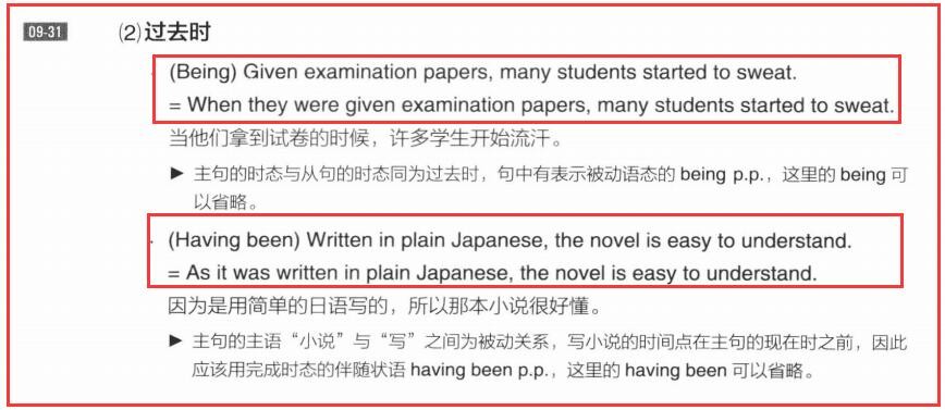 备注:动态动词的“being done”结构表示“正在被做某事,此时为现在分词被动结构,现在分词being不可以省略”